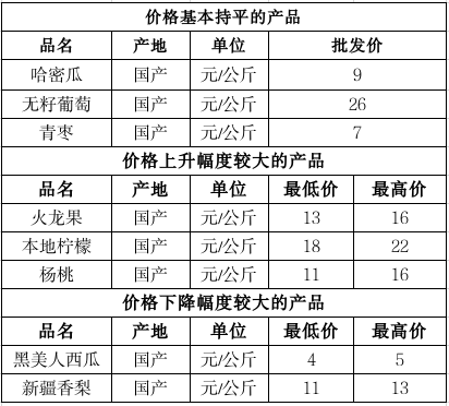 本周行情分析:本周水果供应充足,临近清明,销售量较上周有所上涨。杨桃、火龙果供应较少,价格浮动较大。天气回暖,西瓜、菠萝热销。