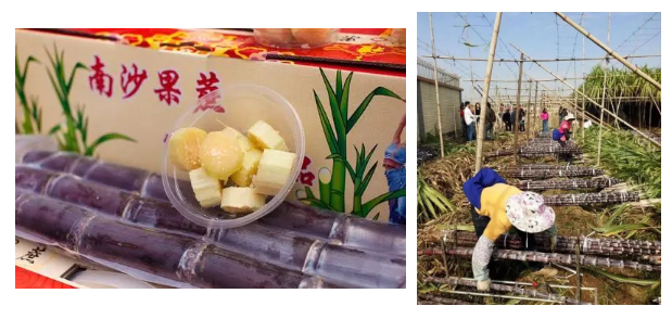 果蔗,顾名思义,是一种可食用的水果甘蔗。产自广州市南沙区东涌镇的东涌果蔗以黑皮果蔗为主。东涌果蔗不仅蔗形靓、节间长、大小均匀、表皮乌黑带灰粉,蔗茎皮薄易剥落,且肉色纯白,肉质嫩脆、汁多、味道清甜爽口。