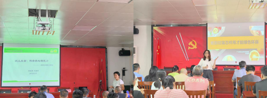 活动期间,专家团队在长坡镇政府举办了一场专题科技宣讲会。围绕“农田土壤肥力管理”“餐厨垃圾资源化绿色利用”等主题,通过图文并茂展示和典型案例分析相结合的方式,系统讲解了关键技术要点,结合当地农业生产实际,介绍了科学施肥、土壤改良、有机废弃物循环利用等实用方法,吸引了当地近百名农户参加。为精准对接一线技术需求,团队专程赴广东浩田农业发展有限公司开展调研,详细了解企业在生态种植、农业废弃物资源化利用等方面的技术瓶颈与发展需求。随后,团队实地考察了当地蔬菜种植基地和循环农业示范点,针对生态种植模式、秸秆饲料化和肥料化利用等关键环节进行了现场指导,并提出了多项可行性建议。