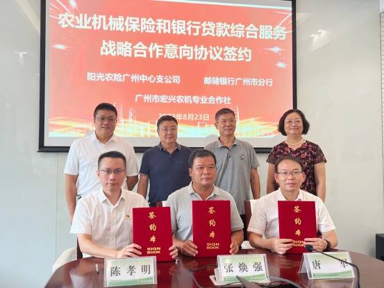 阳光农业相互保险公司广州中心支公司、中国邮政储蓄银行广州市分行和广州市增城宏兴农机专业合作社三方签订了长期合作意向书。