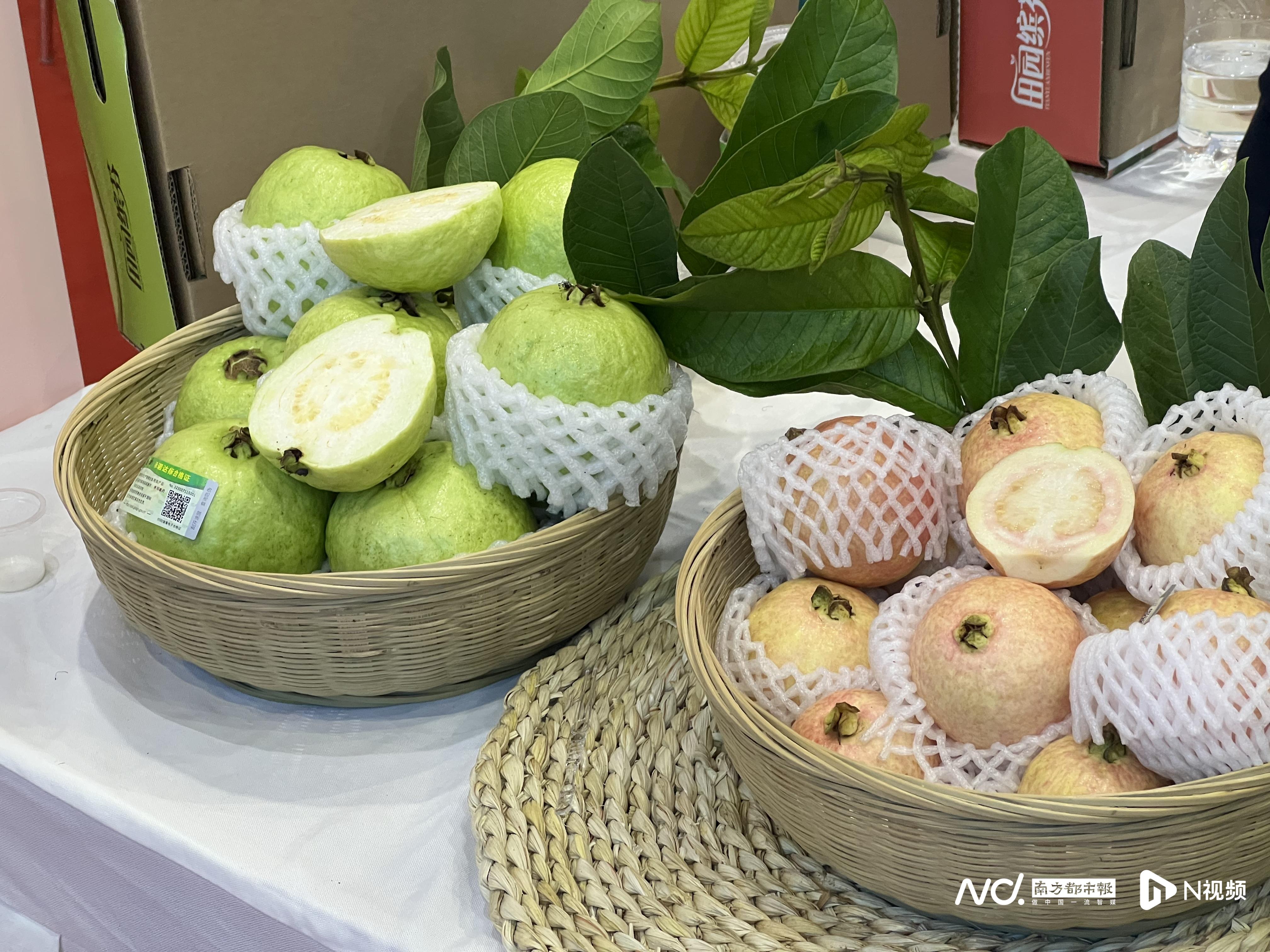 展会现场,获得粤港澳大湾区“菜篮子”认证的农产品并不少见。图为贴有认证标签的番石榴。
