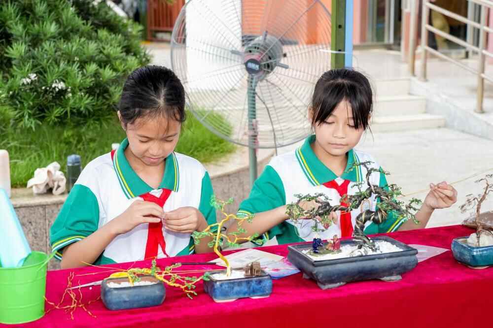 活动当天,还特别邀请了瑞岭村华南小学的同学们进行盆景剪裁表演,小朋友专注的神情,展现了他们对盆景艺术的热爱和传承,为活动增添了一抹别样的风采。