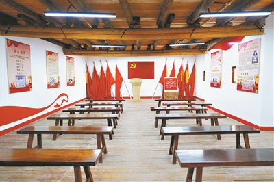 靠近白石嘴胡氏公屋旁边的泥砖屋,房屋外立面上画着中共从化从北区第一个党支部成立大型宣传画。该泥砖屋目前是三村村留守儿童之家。胡南兴说,“我们原本把泥砖屋租下来,想增加餐厅面积。后来,想到作为企业要回馈社会,我们几个合伙人便决定将面积七八十平方米的泥砖屋改为三村村留守儿童之家,成为村里留守儿童学习的幸福之家。”